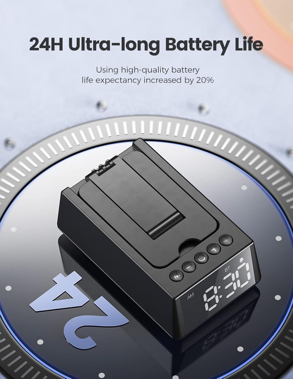 LCD Display & Alarm Clock Function: Equipped with a front-facing LCD screen, this device allows you to set the time, and even when the screen is turned off, the time is still displayed, and saving power. Its unique alarm clock function provides a warm wake-up service. It also has a snooze function; by pressing any button except the “SET” button when the alarm is playing, you can get an extra 5 minutes of snooze time. Pls note: This product is not available to charge mobile phone