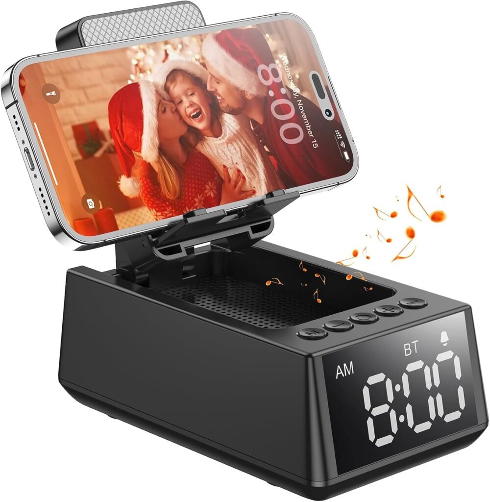 3-In-1 Design: A multifunctional, stylish, and cool gadget that combines a Bluetooth speaker, alarm clock, and phone stand in one. The adjustable stand is stable and meets the usage requirements for various viewing angles. It features stereo sound , with rich bass and clear treble, enhancing your audio experience when used with a phone, suitable for binge-watching, gaming, making video calls without hands to hold phone, or online meetings. This is the perfect gift for oneself and others.
