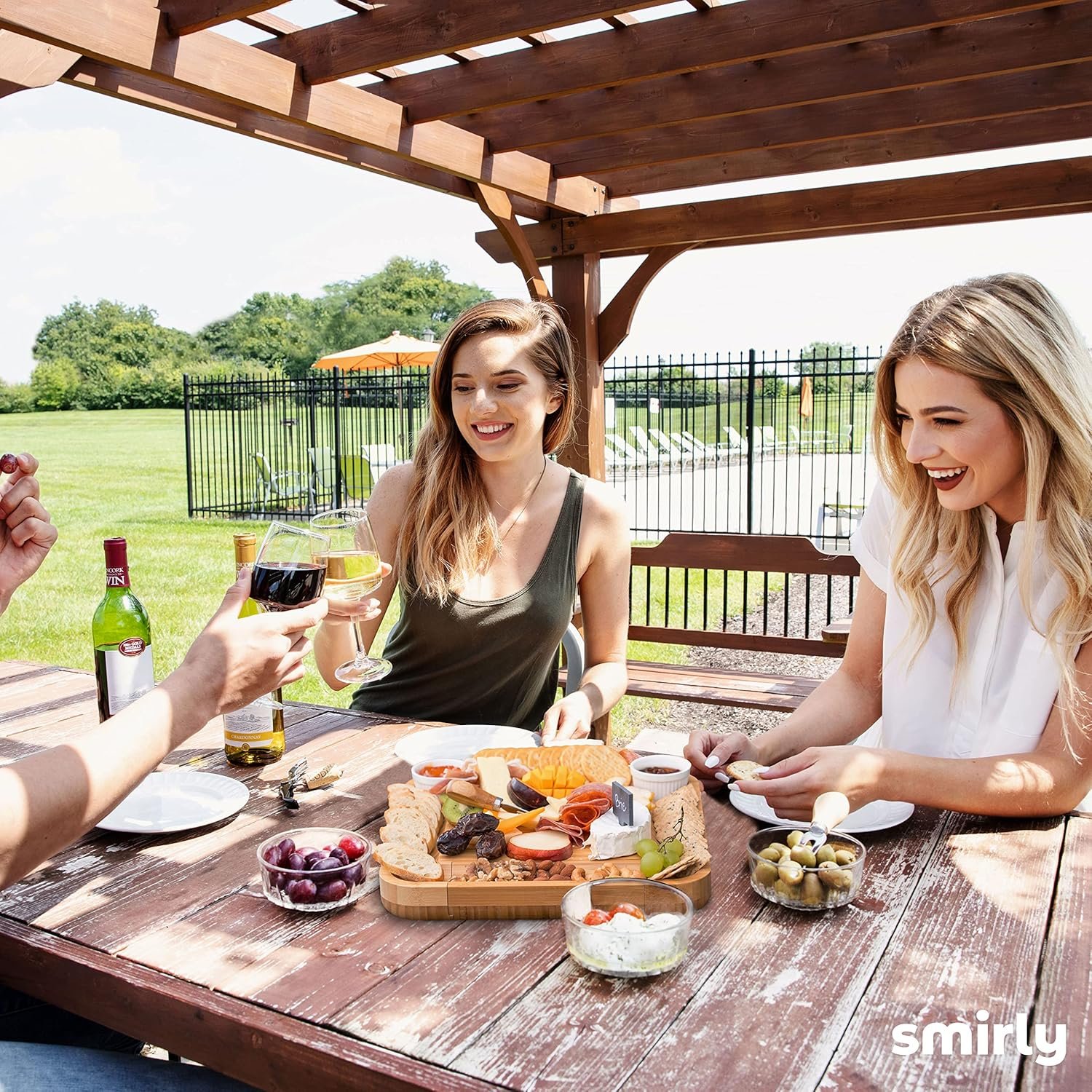 Party Like a Pro – Impress guests with SMIRLY’s wood cheese board and charcuterie tray. Designed for easy entertaining, it perfectly displays a variety of delicious treats, including meats, cheeses, crackers, veggies, and fruits.